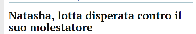 Questa volta il pessimo esempio di giornalismo ci viene offerto sul web, da il Mattino di Padova online, diretto da Paolo Possamai che ha pubblicato l’articolo Natasha, lotta disperata contro il suo molestatore, firmato da Carlo Bellotto (con la collaborazione di Giusy Andreoli). Siamo davanti all’ennesima operazione di normalizzazione ed estetizzazione della violenza maschile contro le donne, molto efficace nel nascondere ciò che alimenta il femminicidio: il bisogno di potere e di controllo sulle donne, i loro corpi e la loro sessualità. La donna assassinata, si chiamava Natasha Bettiolo, aveva 46 anni, era madre di due figli avuti in giovanissima età e lavorava come cuoca alle mensa di una scuola elementare. L’assassino Luigi Sibilio, è ricoverato al policlinico di Padova, dopo aver assassinato Natasha appena uscita dal lavoro, ha tentato il suicidio. Nonostante da anni si parli di femminicidio e ci siano analisi approfondite del fenomeno, il Mattino di Padova narra i fatti con disarmante superficialità anche se è in buona compagnia: altri quotidiani di Padova sciorinano le parole raptus, delitto passionale e titolano che l’assassino aveva “perso la testa”.