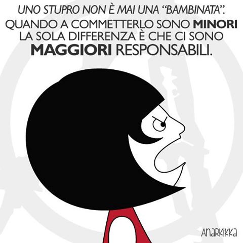 No, lo stupro non è una bambinata nemmeno quando è commesso da minorenni e quando accade che gli stupratori abbiano meno di 18 anni, il mondo degli adulti dovrebbe interrogarsi e capire dove sono le responsabilità della comunità, della società e della famiglia dove piccoli stupratori crescono.
