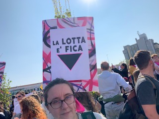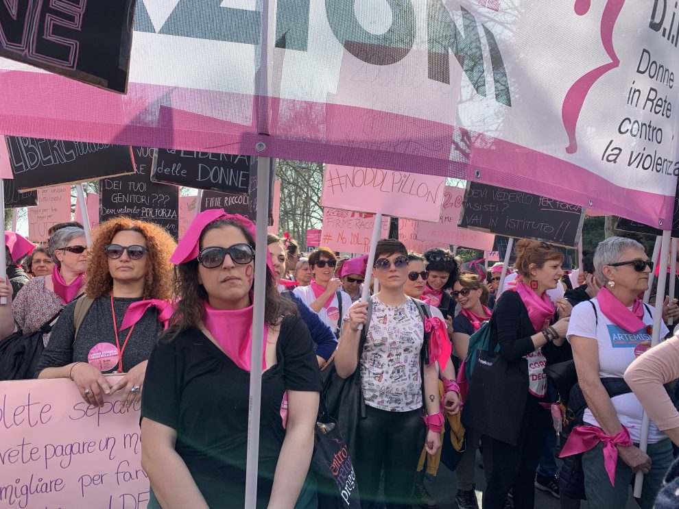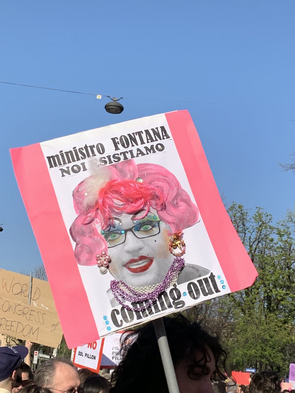 Ieri eravamo molte di più di 30mila. Alla manifestazione promossa da Non una di meno contro le idee reazionarie degli organizzatori del World Congress of Families, che si è tenuto dal 29 al 31 marzo, hanno partecipato più di 100mila persone. Non una di meno ha parlato di ben altri numeri rispetto a quelli sciorinati dalla questura e dai media che non hanno reso giustizia a una mobilitazione imponente. Chi come me, è stato in quella fantastica marea, sa che il dato di 30mila persone è sottostimato. La manifestazione è stata solo uno degli eventi organizzati da Non una di meno che ha anche indetto tre giorni di mobilitazione con “eventi, conferenze, laboratori, spettacoli e performance”. Oggi a conclusione delle iniziative contro il Wcf, c’è stata l’assemblea transnazionale con l’intervento di Marta Dillon (Ni Una Menos Argentina) e le attiviste dei movimenti spagnoli, polacchi, croati,irlandesi, olandesi e francesi.Il corteo colorato, gioioso e pacifico, è partito da Porta Nuova alle tre di un pomeriggio caldo e luminoso e ha attraversato le strade della città come un fiume in piena. Le manifestanti hanno cantato e scandito slogan, accolte e applaudite da alcune veronesi che sui loro balconi hanno danzato ed esposto bandiere arcobaleno e i drappi color fucsia. “Voglio il vaccino contro il Papillon Virus”, “Indietro non si torna, scegli, sorridi, vivi”, “Se un ovulo fecondato è una ‘persona’ e un rifugiato No! Abbiamo un problema”, “Ministro Fontana, noi esistiamo, faccia coming out“, “La lotta è fica”, “My body, my choice, my rights“, “Col rito, col rito, orgasmo garantito. Chiesa pastafariana”: questi erano alcuni degli striscioni e cartelli, alcuni ironici, portati in corteo dalle manifestanti che propongono un’altra idea di società e desiderano che le relazioni umane siano libere dal dominio, dal potere e dalla violenza e che siano fondate sul rispetto delle differenti identità e delle scelte delle persone.