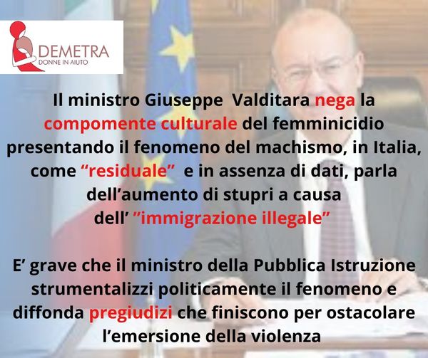 Eppure ieri, il ministro Giuseppe Valditara, durante la presentazione della Fondazione Cecchettin alla Camera dei Deputati, ha negato, durante un intervento videoregistrato, la componente culturale nel femminicidio ed ha tacciato questa analisi come frutto di un’ideologia.